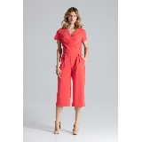 Koralowy Kombinezon z Szerokimi Nogawkami 7/8 z Kopertowym Dekoltem 309,00 PLN
