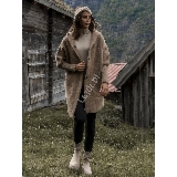 Szlafrokowy Płaszcz z Zamszu - Beżowy