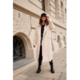 Beżowy płaszcz damski z paskiem 1804